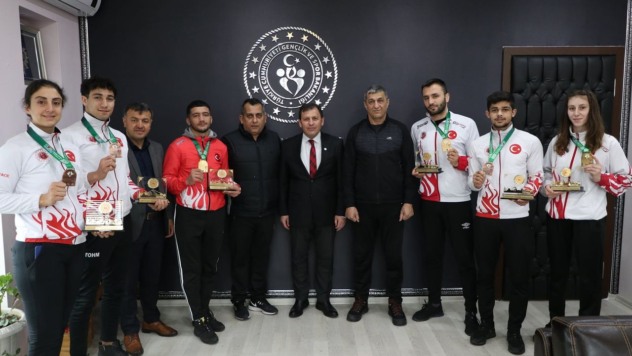 Şampiyonları makamında ağırlayan Gençlik ve Spor İl Müdürü Ali İhsan Kabakcı, “Büyük bir çalışma ve emek sonucu 35 ülkeden 800’ü aşkın sporcu arasında 3 Altın, 3 Bronz madalya elde ederek büyük bir başarıya imza atan sporcularımızı ve