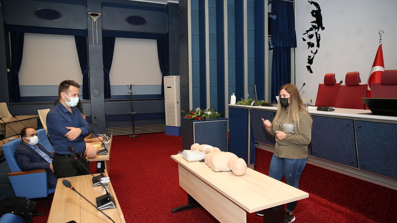 Korona virüs tedbirleri kapsamında Büyükşehir Belediyesi Meclisi’nde gerçekleşen eğitim iki gün sürdü. Uzmanlar tarafından ilk yardım konuları, hastaya ilk müdahale ve nasıl müdahale edileceği, temel yaşam gibi konular uygulamalı olarak anlatıldı.