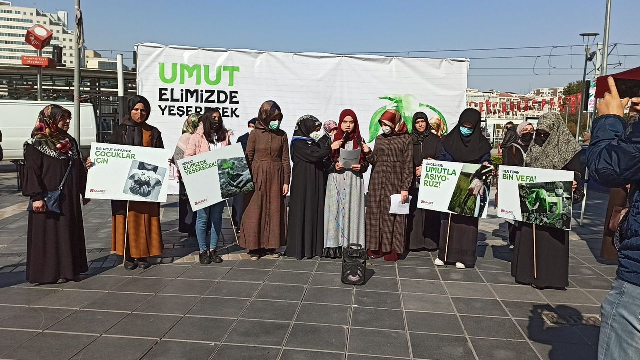 Saadet Partisi Kayseri Kadın Kolları adına açıklama yapan Beyza Serbest, “Ülke olarak son yıllarda ve özellikle geçtiğimiz yaz aylarında, ciddi boyutta orman yangınları yaşadık. Günlerce süren yangınlar karşısında adeta ciğerlerimiz yandı. Bununla birlikte, yine ülkemiz, yıllardır, bir grup şirketin çıkarları için, beton uğruna; büyük bir yeşil alan kaybına uğradı. Doğa üzerinde meydana gelen tahribat, açılan yara gittikçe derinleşti. Ancak biz bu yarayı, birlikte sarabileceğimize, doğayı hep birlikte yeniden onarabileceğimize inanıyoruz. Yanan ormanlarımızı, mahvedilen doğayı; hep birlikte yeniden yeşerteceğimizi umut ediyoruz. Bu farkındalıkla, Saadet Partisi Kadın Kolları olarak, kurmak istediğimiz, Necmettin Erbakan -UMUT ORMANI ile doğamızda ve sosyal hayatımızda kaybettiğimiz değerleri el birliği ile yeniden kazanacağımıza ve böylelikle yarınlara daha güzel bir ülke bırakacağımıza inanıyoruz.” şeklinde konuştu.