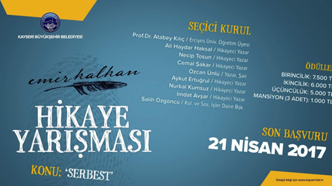 Gül Ayinleri, Türk Düğünü, Ha Bu Diyar, Bu Taraf Anadolu, Kanatsız Kuşlar Şehri ve Hoşçakal Şehir gibi kitapların yazarı Emir Kalkan 2015 yılında 67 yaşındayken hayatını kaybetmişti. Büyükşehir Belediyesi Kayseri'nin önemli yazarlarından Emir Kalkan adına Hikaye Yarışması düzenledi. Konusu serbest olacak olan hikaye yarışmasına en fazla iki hikaye ile katılım olacak. Yarışmaya başvurular Büyükşehir Belediyesi'nin www.kayseri.bel.tr internet adresinden yapılabilecek ve başvurular 21 Nisan 2017 tarihinde sona erecek.