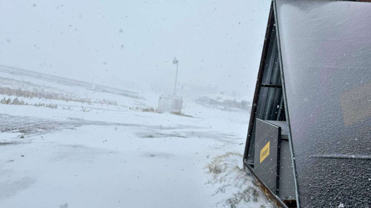 Erciyes'te yağışın etkisiyle görüş mesafesi düşmüş durumda. Pist çevresi ve yakın alanlar ince bir kar tabakasıyla kaplı.