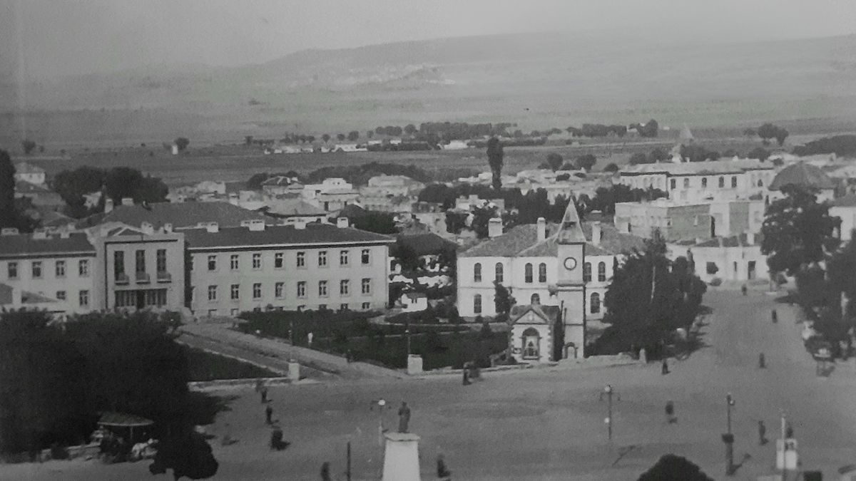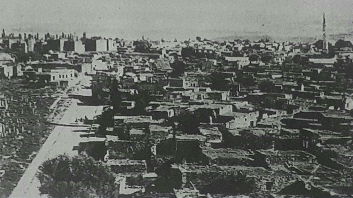 Arka planda Erciyes Dağı’nın eteklerine doğru uzanan boş araziler, Kayseri’nin o yıllarda henüz küçük ama düzenli bir şehir olduğunu hatırlatıyor.