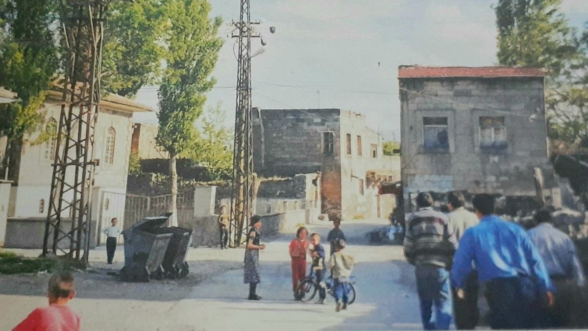 Gülük Mahallesi’nin dar sokaklarında çocukların bisiklet sürdüğü, oyun oynadığı; büyüklerin sokak arasında ayaküstü sohbet ettiği o günlerden bir an. O yıllarda Kayseri’nin mahalleleri hâlâ taş evleri, toprak yolları ve samimi komşuluk ilişkileriyle doluydu.