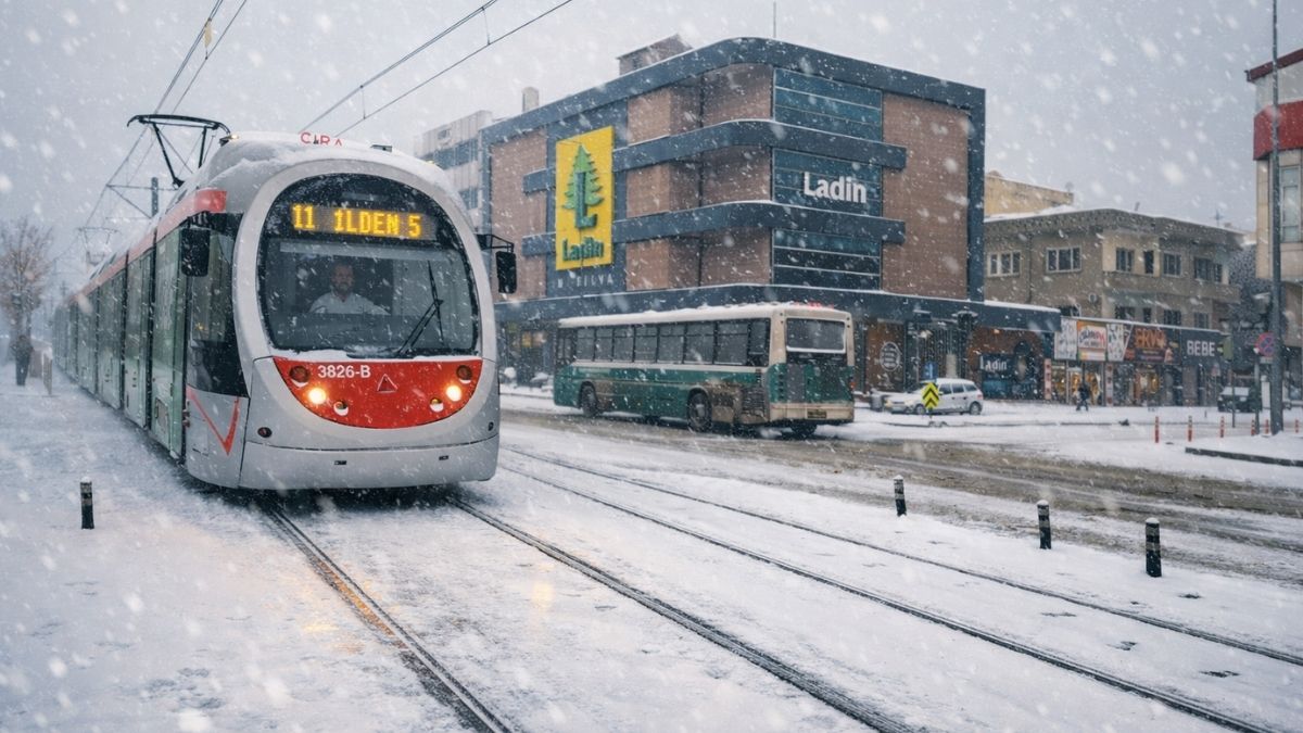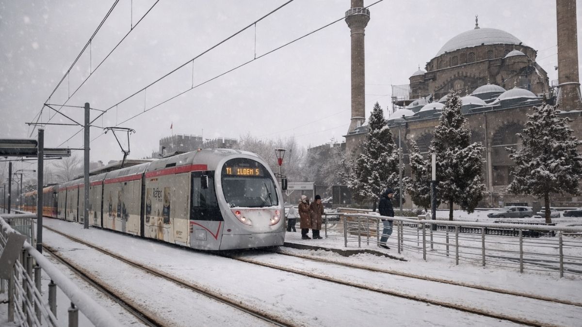 Cumhuriyet Meydanı Tramvay Durağı’nda kar yağışıyla birlikte kış manzarası oluştu. Yağışa rağmen tramvay seferlerinin kontrollü şekilde devam ettiği görüldü. Tramvayı kullanan vatandaşlar, soğuk hava ve kar nedeniyle bekleme alanlarında tedbirli davrandı. Raylar ve peron çevresinde ekipler tarafından temizlik çalışmaları yapıldı. Bürüngüz Camii ise bu görselin en dikkat çeken detayı olurken, kar yağışıyla birlikte meydandaki kış atmosferini yansıttı. Soğuk hava nedeniyle durakta bekleyen vatandaşların tedbirli davrandığı gözlendi.