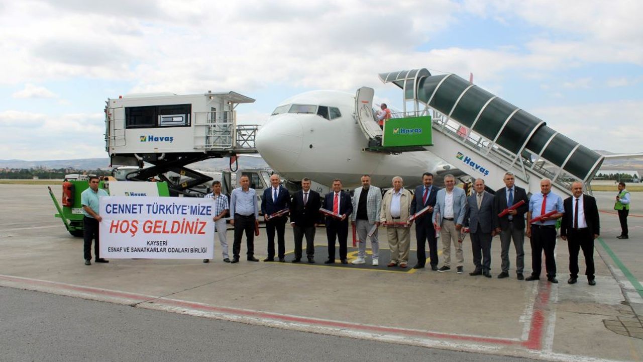 Almanya'dan havalanan ve 151 kişiyi taşıyan Türk Hava Yolları'na ait uçak; Erkilet Havaalanı'nda KESOB Başkanı Şeyhi Odakır, yönetim kurulu üyeleri tarafından karşılandı. Uçaktan inen vatandaşlara oda üyeleri çiçek hediye etti.