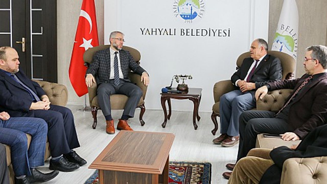 Yahyalı Belediye Başkanı Esat Öztürk'ün makamında gerçekleşen ziyarette, Kayseri İl Müftüsü Doç. Dr. Şahin Güven'in yanı sıra Talas İlçe Müftüsü Esat Yapıcı ve geçen dönem Yahyalı'da görev yapan Bünyan İlçe Müftüsü Bahri Çam yer aldı.
