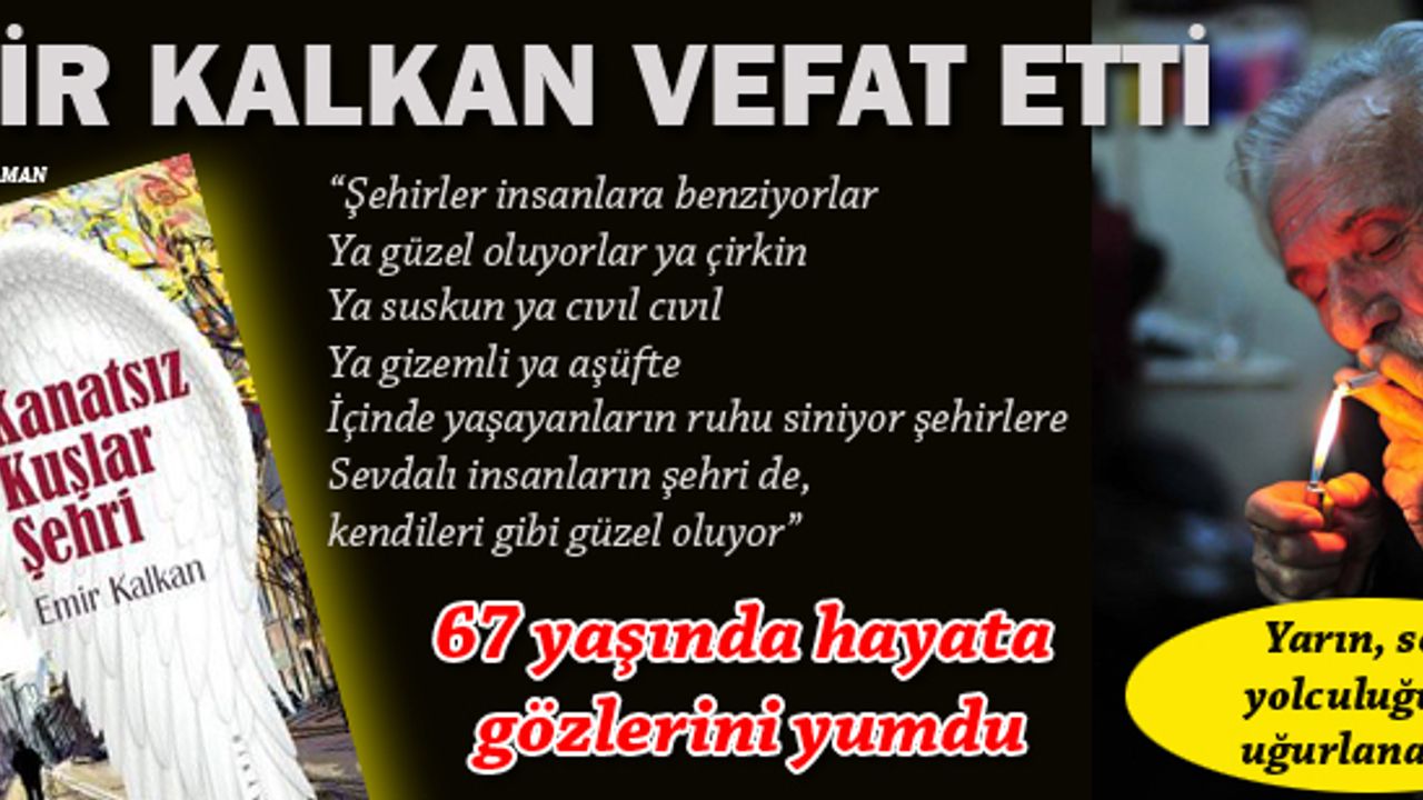 Geçtiğimiz günlerde geçirdiği mide ameliyatından sonra durumu ağırlaşan ve dün ERÜ TIP Fakültesi Yoğun Bakım Servisi’ne kaldırılan 67 yaşındaki edebiyatçı, şair, yazar Emir Kalkan, vefat etti. Zengin bir kelime hazinesine yaslanan güçlü ve ahenkli üslubuyla dikkat çeken Kalkan, fani dünyaya veda etti. Kalkan yarın öğle namazına müteakip Camikebir’de kılınacak cenaze namazının ardından son yolcuğuna uğurlanacak.