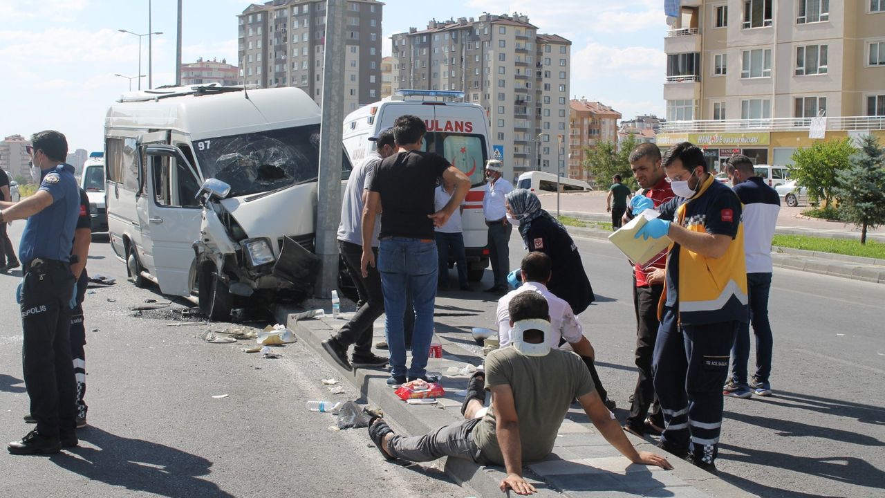 Kaza, saat 16.00 sıralarında, Melikgazi ilçesi Esentepe Mahallesi Girne Şehitler Caddesi'nde meydana geldi. Şahin A. yönetimindeki 38 ADJ 521 plakalı kamyon, tali yoldan çıkarak şehir yönüne giden işçileri taşıyan Osman G.'nin kullandığı 38 P 0813 plakalı minibüse çarptı. Çarpmanın şiddetiyle, minibüs refüjdeki aydınlatma direğine çarptı. Kazada, fabrika işçisi 10 kişi yaralandı. İhbar üzerine kaza yerine çok sayıda sağlık ekibi sevk edildi. Kaza yerine gelen sağlık görevlilerince ilk müdahalesi yapılan yaralılar ardından çeşitli hastanelere kaldırdı. DHA