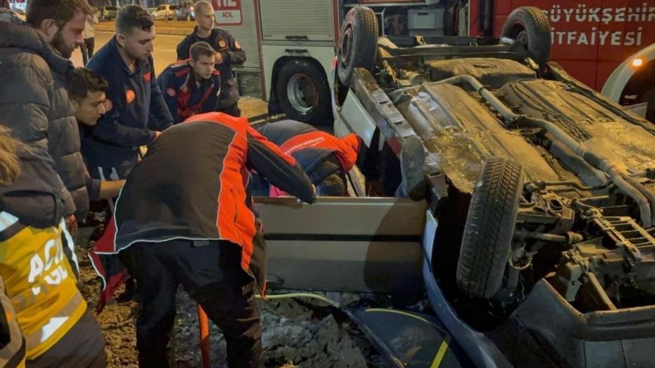Kazada A.H.B. otomobilde sıkışırken, İ.Ç. yaralandı. İhbar üzerine bölgeye polis, itfaiye ve sağlık ekipleri sevk edildi. Polis ekipleri çevrede güvenlik önlemi alırken, itfaiye ekipleri de takla atan otomobilde sıkışan A.H.B.’yi çıkartmak için çalışma yaptı.