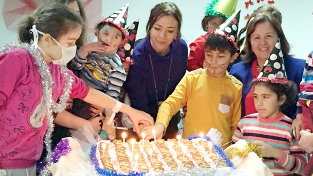 Görsel sanatlar öğretmeni Zeynep Aytaş öğrencilerinden gönüllerinden kopan dilekleri kağıtlarına aktarmalarını istediklerini belirterek, "Öğrencilerimiz, büyük bir heyecan ile kardeşlerine mutluluğun resmini çizdiler" dedi. Minikler yeni yıl dileklerinde 'Biz sizinle bir dünyayız, sizi çok seviyoruz' notları yazarken, mutlulukları gözlerinden okunan lösemili çocuklar ise bir gün de olsa hastalıklarını unuttu.