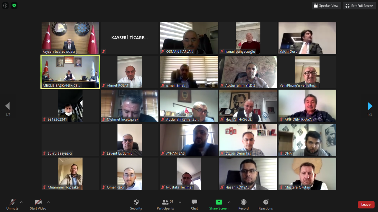 Meclis Başkanı Cengiz Hakan Arslan’ın başkanlığında video konferansla yapılan toplantıya; konuk olarak Kayseri Vergi Dairesi Başkanı Şahin Demirci ile SGK Kayseri Sosyal Güvenlik İl Müdürü Hacı Ali Hasgül’ün yanı sıra Başkan Ömer Gülsoy, Yönetim Kurulu üyeleri, Meslek Komitesi ve Meclis Üyeleri, Kadın Girişimciler Kurulu, İcra Kurulu Üyeleri, Yüksek İstişare Kurulu Üyeleri, Meclis Başkanlık Divan üyeleri ve Basın mensupları katıldı.