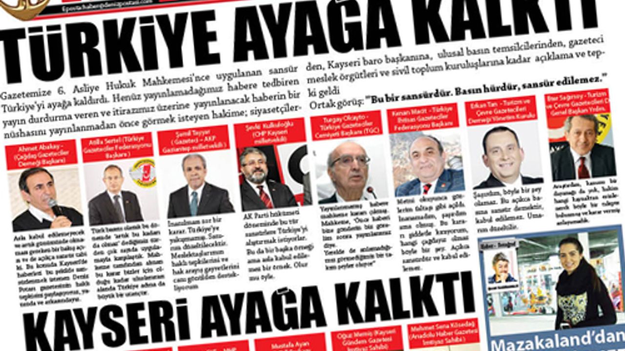 Kayseri’de yayımlanan Deniz Postası gazetesi, özel bir hastane ile ilgili açacağı dosyayı sayfalarından duyurdu. Ancak sadece duyurusu yapılan yayınlanmamış haber için Kayseri 6. Asliye Hukuk Mahkemesi tarafından ihtiyati tedbir kararı alındı. Mahkeme hakimi, gazeteden yayımlanmamış haberin bir kopyasını “ivedilikle” göndermesini istedi. Gazete, haberi göndermeyeceğini söyledi.
