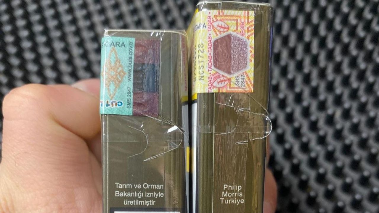 “Sigara paketlerinde bandrol değişimi oldu. ‘Bu bandroller sahte mi?’ diye çok mesaj geliyor. Sağdaki mavi renkli bandroller yeni basılan bandrollerdir,” ifadelerini kullandı.
