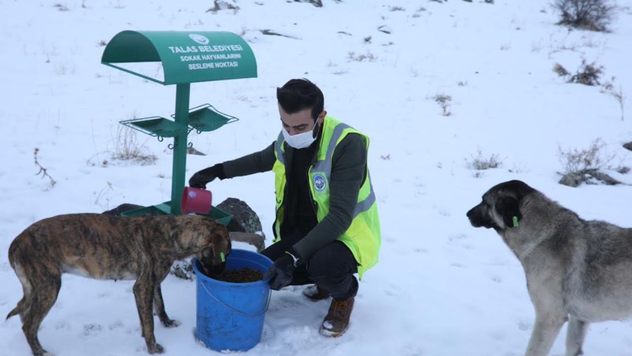 Konuyla ilgili kısa bir değerlendirmede bulunan Talas Belediye Başkanı Mustafa Yalçın, “Hayvan dostlarımızın daima yanında oluyoruz. Yaz, kış dört mevsim boyunca onların yiyecek bulmaları için daha önceden ilçe sınırları içinde belirlediğimiz noktalara hayvan yemleri ve yiyecek maddeleri bırakıyoruz.” dedi.