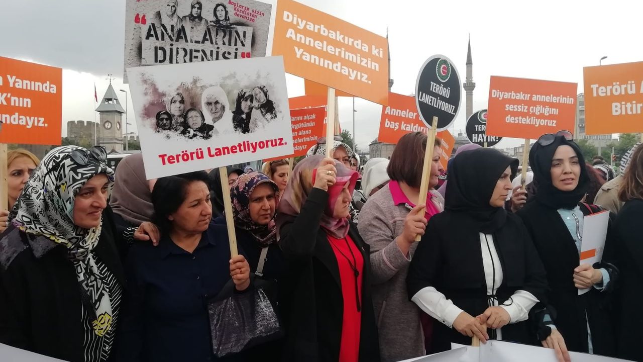 Diyarbakır’da evlatlarını terör örgütü PKK’dan geri almak isteyen annelere destek için Sivil Toplum Kuruluşları kadın temsilcileri ve kadın muhtarlar tarafından Cumhuriyet Meydanı'nda yapılan basın açıklamasında konuşan İstanbul Beşiktaş’taki hain bombalı saldırıda şehit düşen Polis Memuru Yasin İke’nin ablası Keziban Eser, annelerin 23 günlük sessiz eyleminin bir dur çığlığına dönüştüğünü söyledi.