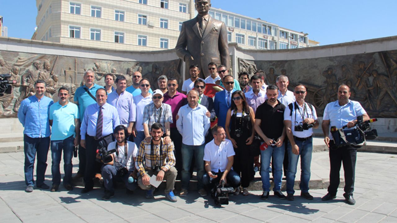 Cumhuriyet Meydanı’nda düzenlenen törene, Kayseri Gazeteciler Cemiyeti Başkanı Metin Kösedağ, Doğan Haber Ajansı Bölge Müdürü Oktay Ensari, İhlas Haber Ajansı Bölge Müdürü Cem Atakan ile cemiyet yönetiminde bulunan ve üye olan gazeteciler katıldı.