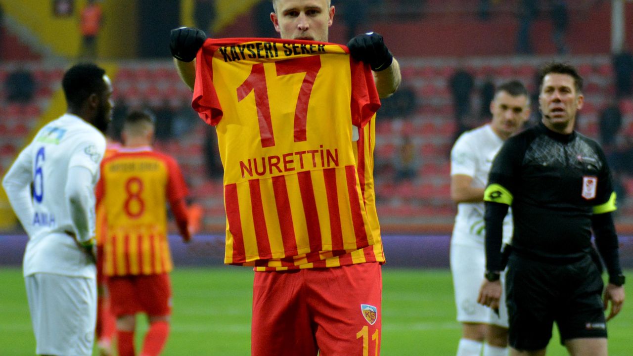 Rize maçında da kaptan olarak çıkan ve tek galibiyet golünü atan ArtemKravets, gol sonrası Nurettin’in forması ile poz verip, golü Nurettin’e hediye etti. DHA