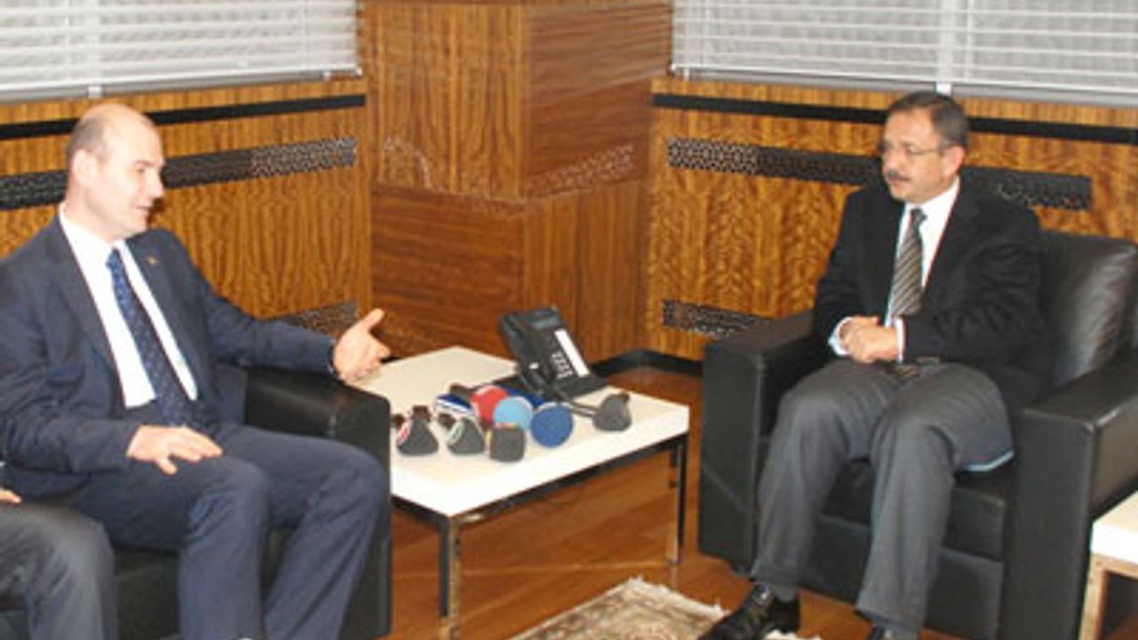 Ziyaretin sonunda Başkan Özhaseki günün anısına AK Parti Genel Başkan Yardımcısı Soylu'ya üzeri işlemeli bakır ibrik hediye etti.