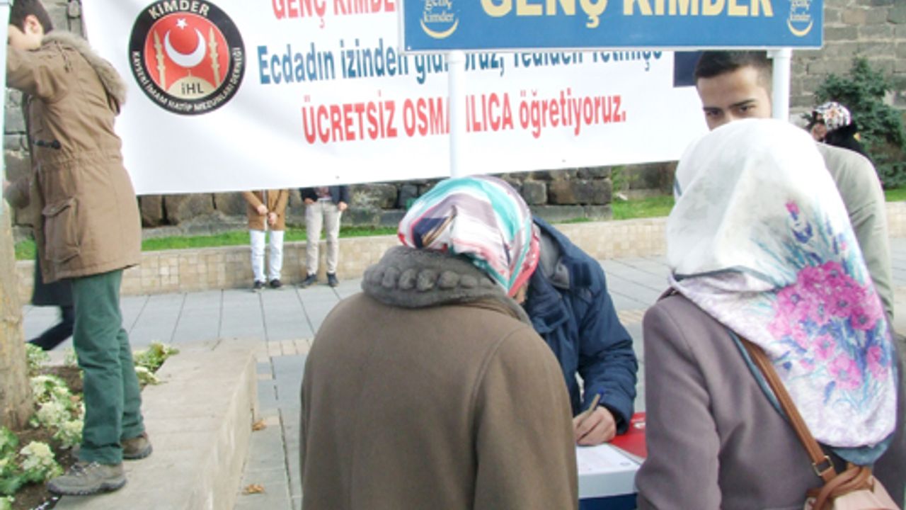 Cumhuriyet Meydanı'nda açtıkları Osmanlıca kursu kayıt standının önünde açıklamalarda bulunan KİMDER Gençlik Teşkilatı Başkanı İsmail Eğin, son dönemde ülke gündeminin önemli bir parçası olan 19. Eğitim şurasında alınan kararların, küçük bir bölümü olan Osmanlıca dersi tartışmalarının gençlerinde dikkatini ve alakasını çektiğini ifade etti. Eğin, bazı siyasi parti sözcüleri, tarihçiler, hemen hemen herkesin bu konuda gençlerin adına da açıklamalar yaptığını ve gençlerin sözcülüğünü üstlendiğini belirterek, “Biz Kayseri İmam Hatip Mezunları Derneği Gençlik Teşkilat (Genç- KİMDER) olarak, burada biz gençlerin adına konuşanları aradan çıkartıp kendi sözlerimizi söylemek ve yeni sosyal sorumluluk projemizi açıklamak için bugün burada toplanmış bulunmaktayız. Osmanlıcayı – Osmanlı Türkçesini okullarımızda okullarımız da zorunlu eğitim olarak verilen İngilizce ile, Almanca ile , Fransızca ile aynı kefeye koyan zihniyetin dedeleri, İnkılap adı altında alfabeyi Latinlerden , şapkayı Yahudilerden , kanunları İsviçre den , laikliği Fransızlardan almışlar ve 86 yıl önce bir gecede alim olarak uyanana insanları cahil olarak uyandırmışlardır. Ve yine bununla da kalmayıp Yahudi şapkasını takmadılar diye vatandaşımızı iplerde sallayan zihniyetin torunları, bugün bir milletin geçmişi ile bağının tamamen kopması için mezar taşlarını okumak için mi bu deri alacağız? Diyerek aynı küstahlığı sürdürmeleri geçmişe olan, tarihe olan, ecdada olan kinlerini apaçık ortaya koymaktadır. Hadisle müjdelenen Fatih Sultan Mehmet’ten mi, bir sene bile sarayda yaşamamış Osmanlıya halifeliği getirmiş Yavuz Sultan Selim ‘den mi yada bir fermanıyla 100 sene Avrupa da dansı yasaklatmış ecdadımız Kanuni Sultan Süleyman’dan mı korkuyorsunuz ? Biz ecdadın ve onun tarihinin izinden giden gençler olarak bu zihniyetteki insanlara üstad Necip Fazıl’ın şu sözleriyle cevap veriyoruz: kökünü beğenmeyen dal ve dalını beğenmeyen meyve olgunlaşmadan çürür” diye konuştu.