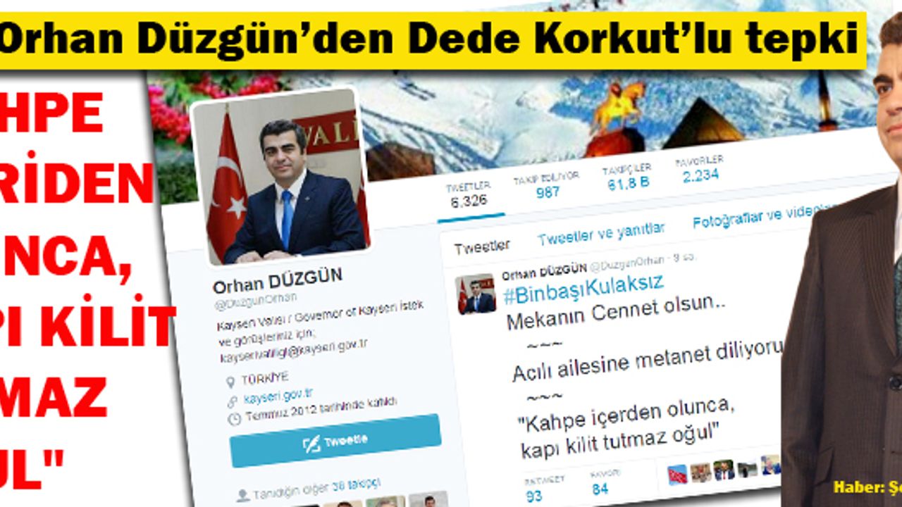 Düzgün, twitter hesabındaki mesajında Dede Korkut’un “Kahpe içerden olunca, kapı kilit tutmaz oğul" sözleriyle terör saldırılarına sert tepki gösterdi.