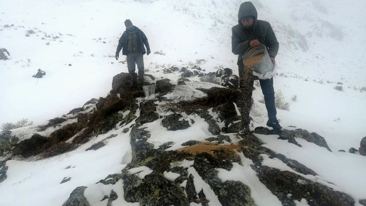 Yerleşim yerlerinden uzak ve kar yağışının yoğun olduğu doğal yaşam alanlarına 2 ton ot ve yonca ile 100 kilogram pazar artığı olan havuç, marul, lahana gibi yiyecekler bırakıldı. İHA